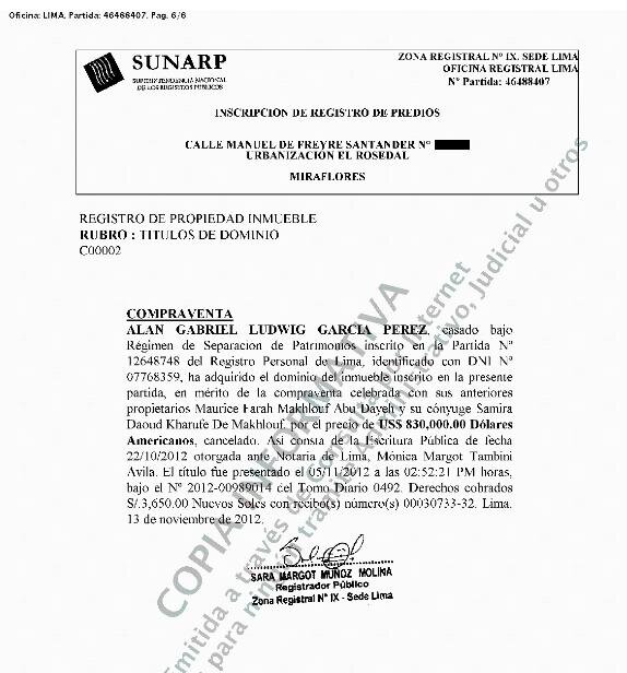 Natteri explica que cualquier persona puede acercarse a las oficinas de la Sunarp y acceder a este documento. Solo debe presentar un formulario donde se consigne la información del solicitante y el número de la partida registral.